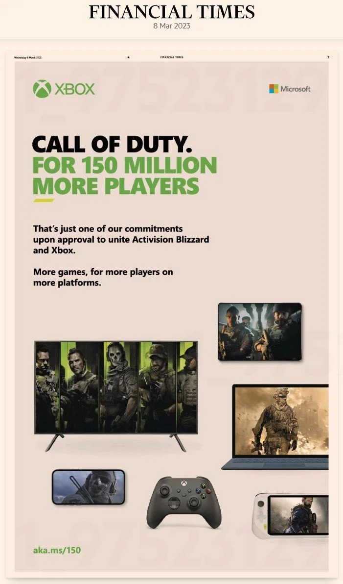 Microsoft Takes Out Full-Page Ads in British Newspapers for Possible Acquisition of Activision Blizzard