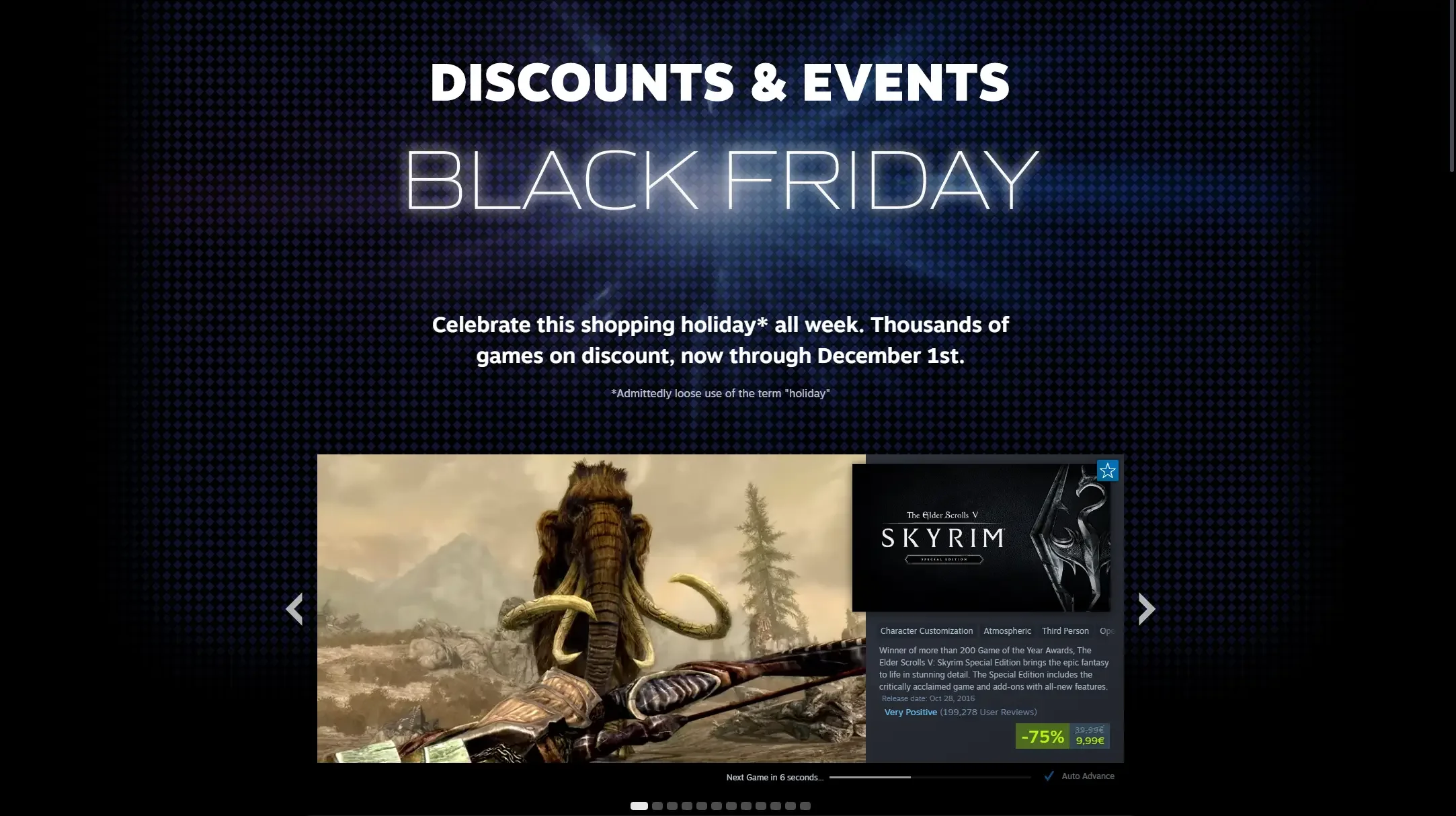 Naturally, the very first thing I see on this historic new sale page is Skyrim.
